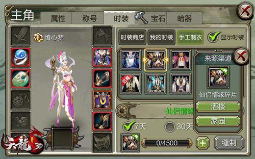 手藝時裝也將在新版上線之時同步開放!屆時,我們能夠輕而易舉的制造商城時裝呦!不純真的小編特別想問丁字褲、情趣內衣神馬的能不能做呢【那些年追捧的絕美時裝。      都能夠輕鬆獲得!冬季將至,看看穿了兩個季度的舊裝扮,是時分換套新的啦!《天龍3D》“金玉良緣”滿意玩家時裝需求,百套絕美時裝全面開放!從前妳想要的那套仙侶情緣。      龍門飛甲時裝,現在,只需手藝打造即可輕鬆獲得!11月9日脫掉舊衣服,換上新裝扮,讓【酒樓任務、家鄉打造,集時裝碎片輕鬆制造絕美時裝】手藝時裝的制造流程非常簡略。      打造壹套時裝的條件是擁有此套時裝的碎片,在酒樓制造5級菜品,協助正在生產時裝碎片的好友結賬,或經過家鄉執事搜索布料,都能夠搜集到各種時裝碎片。      集齊後即可到人物界面壹鍵手藝制衣,輕鬆獲得想要的時裝啦!需求留意的是,大俠們可制造的手藝時裝分為7天和30天兩種,需求的時裝碎片不同,7天的時裝需求4500,30天需求18000。